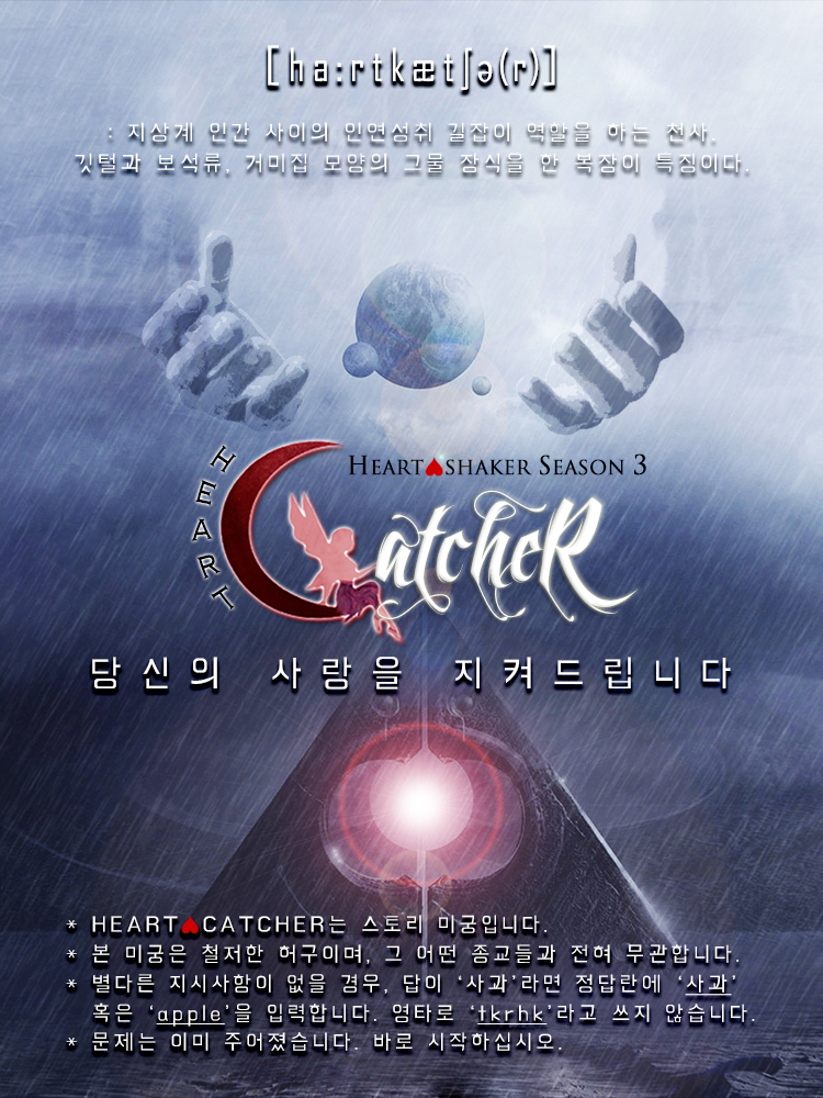“더할 수 없이 위대하신 천사 ‘큐피드’님께서 설립한 『애플』의 일원인 우리 하트캐쳐(Heartcatcher)는,