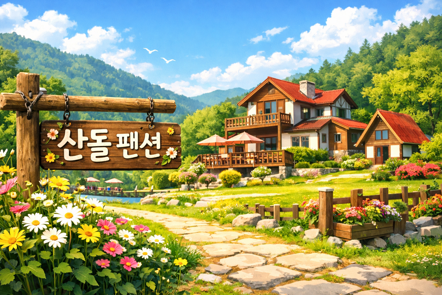 평화롭고 즐거운 '산돌 팬션'에 오신 여러분들을 모두 환영합니다.