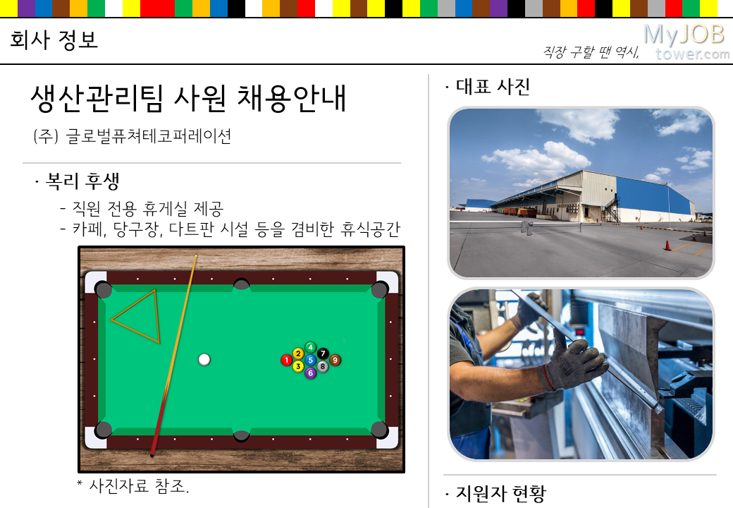 주요 사진들을 보아하니 당구대가 있고, 9-ball 게임을 하고 있네요.