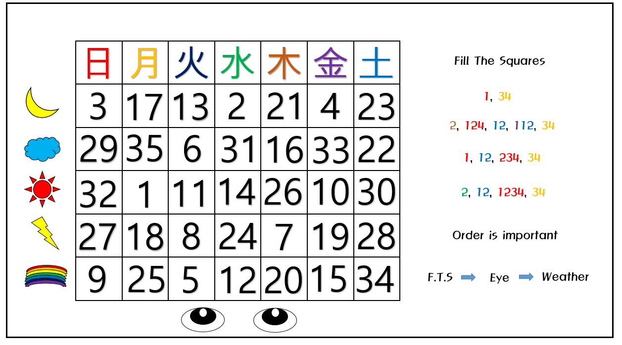 이제 마지막으로 Weather 즉 기상을 표현하고 있는 그림들을 이용하는데 우선 수요일이라는 단서가 나왔으므로 수요일만 봅니다.